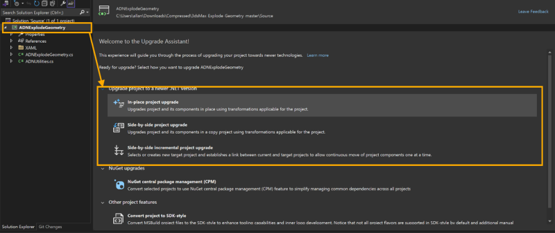 Here, we select the project upgrade way and work with the in-place project upgrade, but feel free to test the other options if they suit your needs.