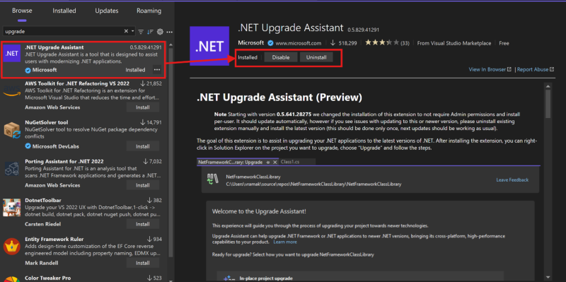 Microsoft provides an Upgrade Assistant extension to help with porting .NET Framework projects to .NET as well as .NET Core to .NET and much more. The tool simplifies and aids in handling the upgrade intricacies, leaving just a few more steps for us to complete.
